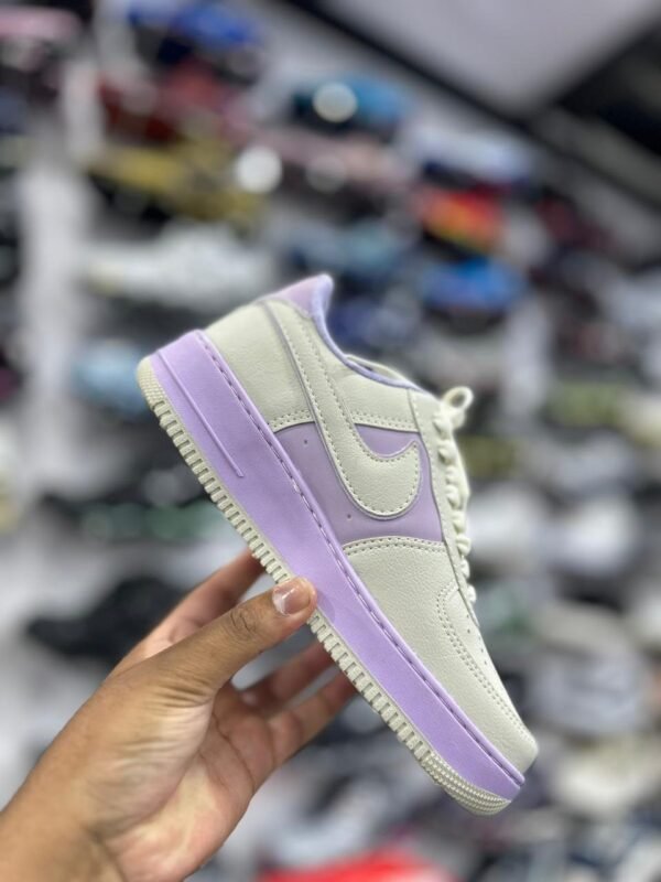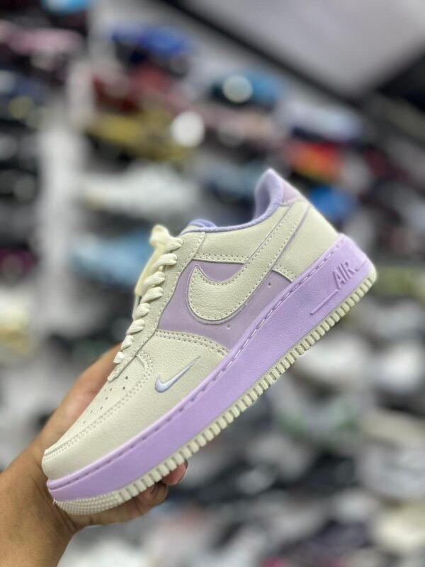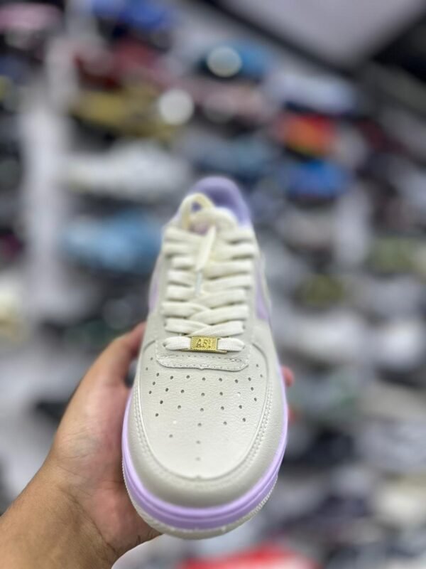 Nike Air Force Branco e lilás une qualidade, desempenho e estilo, representando a força da marca Nike para quem busca confiança e presença marcante em qualquer ocasião.