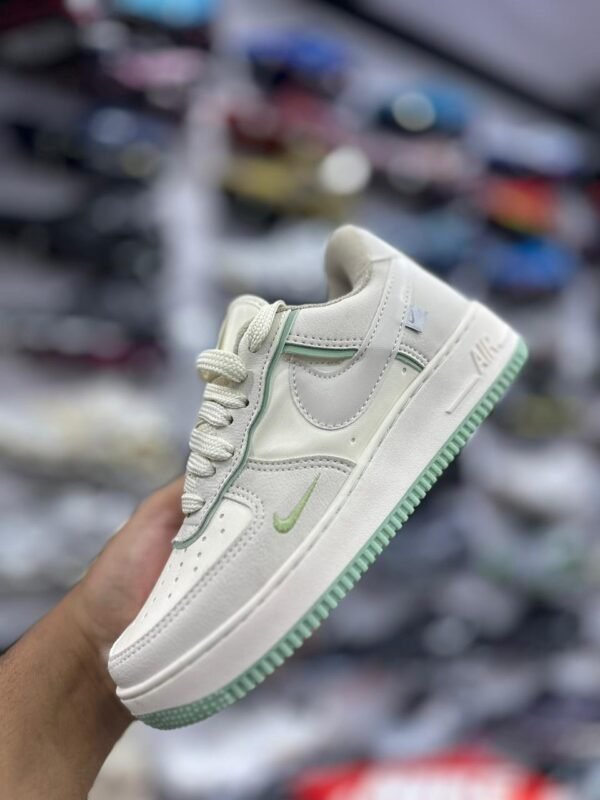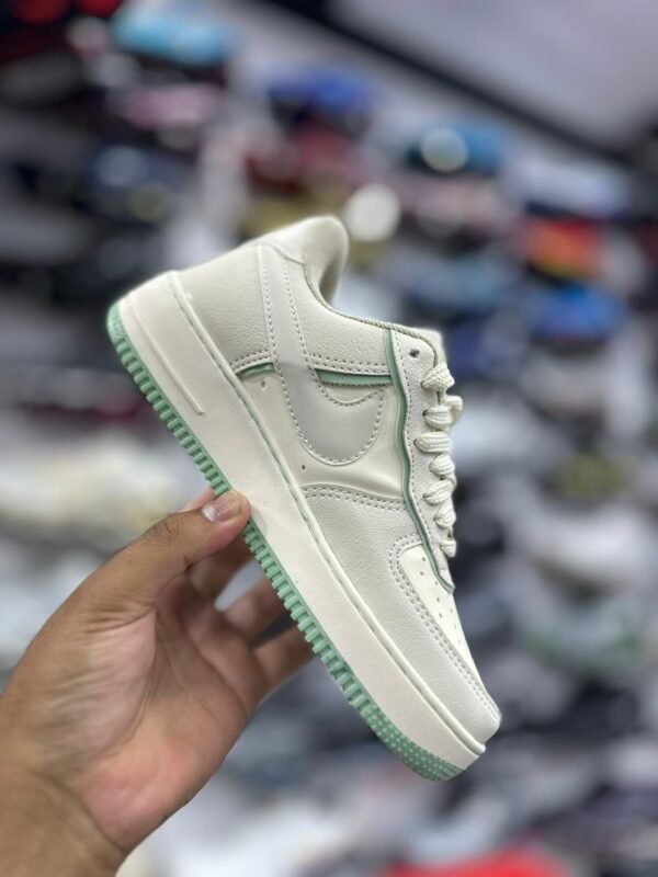 Nike Air Force Branco e verde une qualidade, desempenho e estilo, representando a força da marca Nike para quem busca confiança e presença marcante em qualquer ocasião.