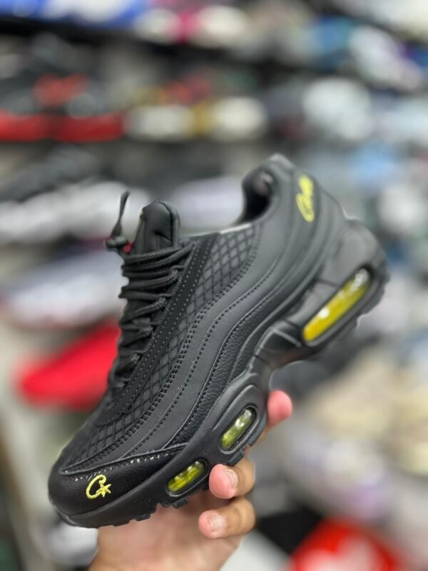 Nike Air Max 95 Corteiz Preto e amarelo une qualidade, desempenho e estilo, representando a força da marca Nike para quem busca confiança e presença marcante em qualquer ocasião.